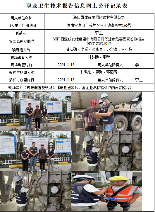 海口西建统发绿色建材有限公司2024年职业卫生定期检测