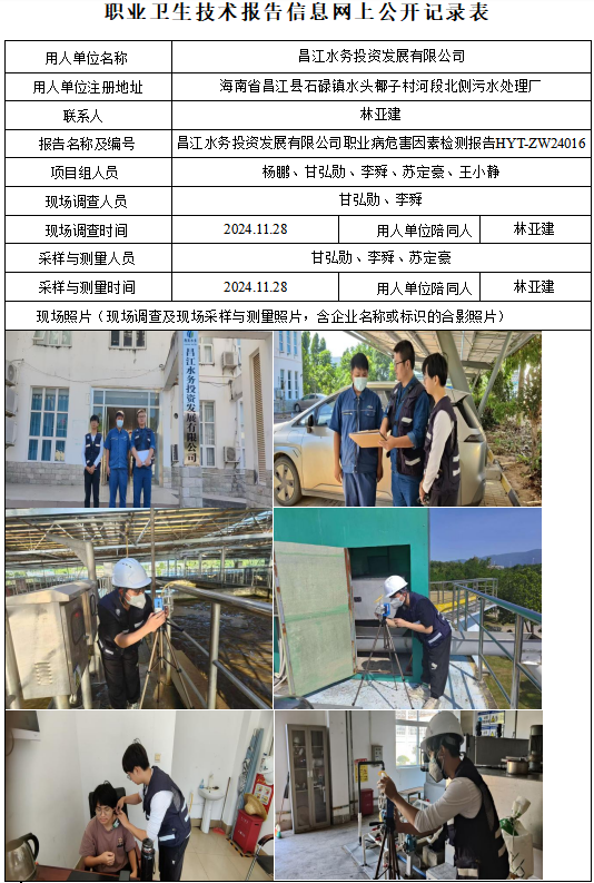 昌江水务投资发展有限公司2024年职业卫生定期检测