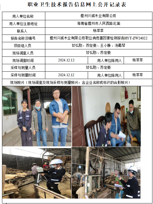 儋州兴诚木业有限公司2024年职业卫生定期检测