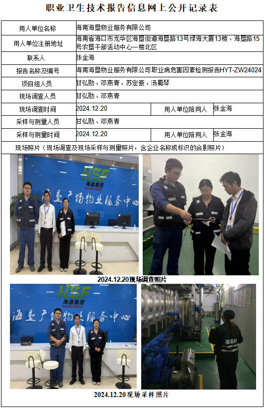 海南海垦物业服务有限公司2024年职业卫生定期检测