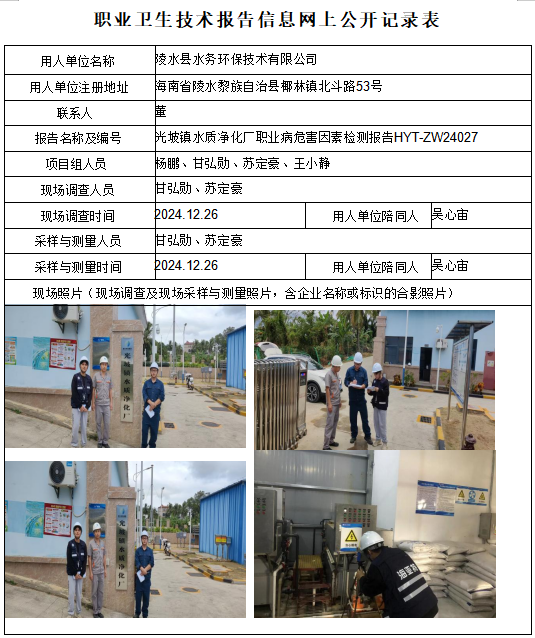 陵水县水务环保技术有限公司光坡污水处理厂2024年职业卫生定期检测