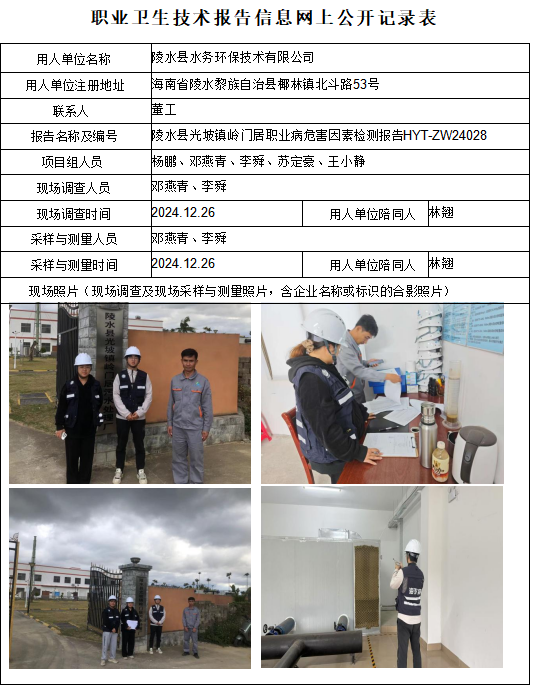 陵水县水务环保技术有限公司岭门污水处理厂2024年职业卫生定期检测