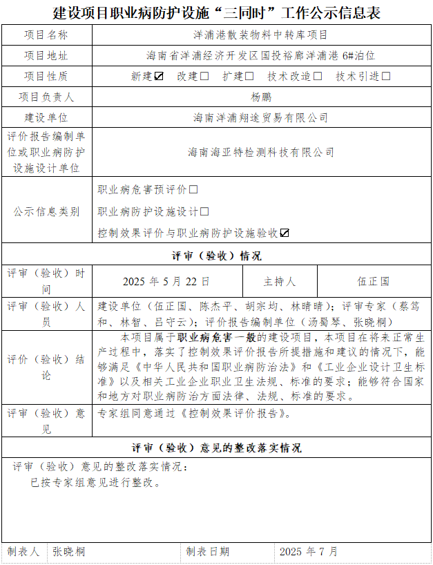 洋浦港散装物料中转库项目-职业病防护设施“三同时”-设计专篇报告公示信息