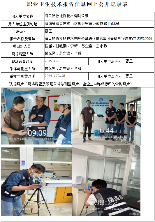 海口皓源检测技术有限公司2025年职业病危害因素定期检测