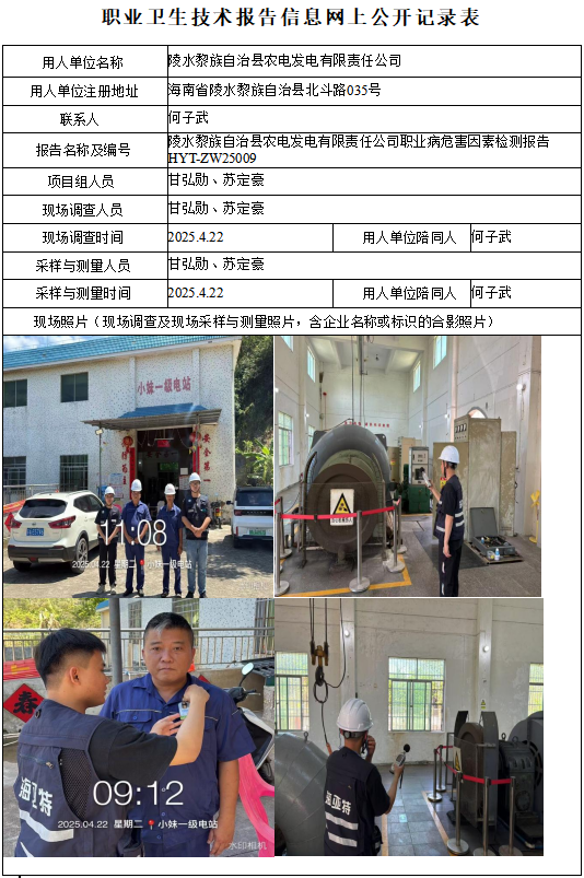 陵水黎族自治县农电发电有限责任公司2025年职业病危害因素定期检测