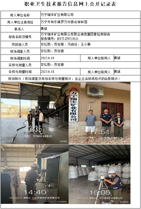 万宁瑞丰矿业有限公司2025年职业病危害因素定期检测