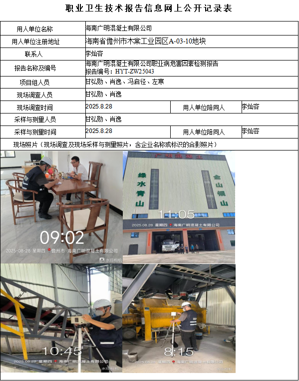 海南广明混凝土有限公司2025年职业病危害因素定期检测