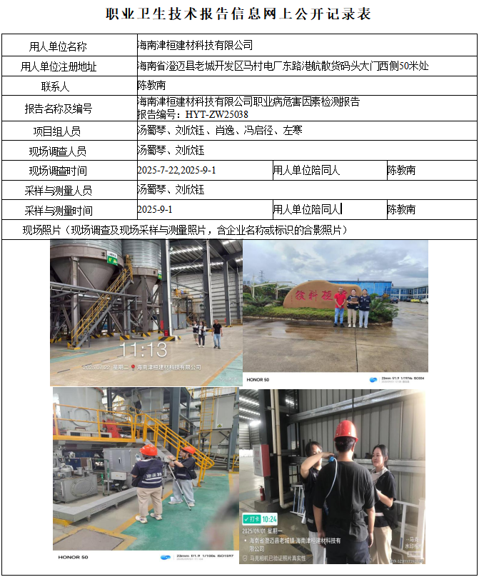 海南津桓建材科技有限公司2025年职业病危害因素定期检测2