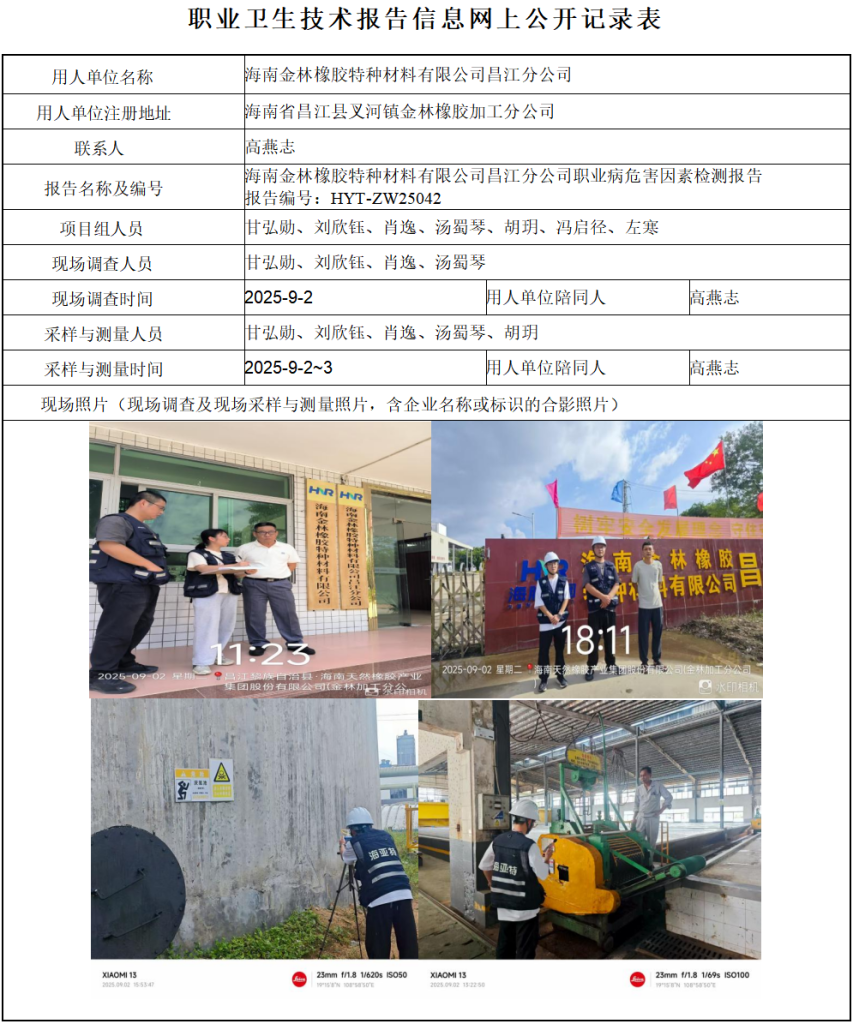 海南金林橡胶特种材料有限公司昌江分公司2025年职业病危害因素定期检测