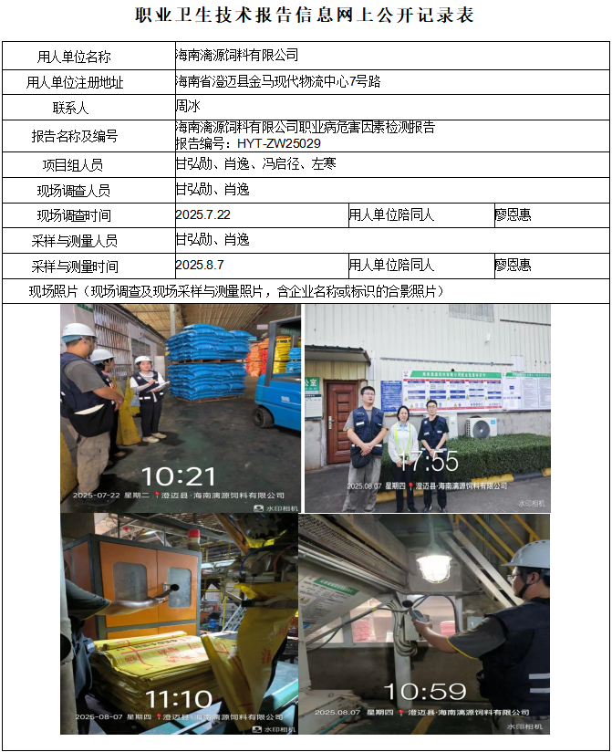 海南漓源饲料有限公司2025年职业病危害因素定期检测
