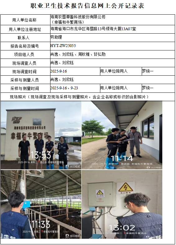 海南农垦草畜科技股份有限公司(幸福和牛繁育场)2025年职业病危害因素定期检测
