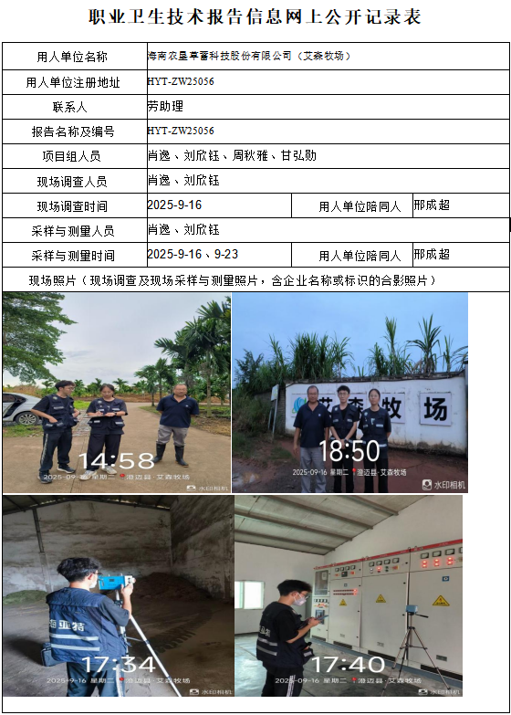 海南农垦草蓄科技股份有限公司(艾森牧场)2025年职业病危害因素定期检测