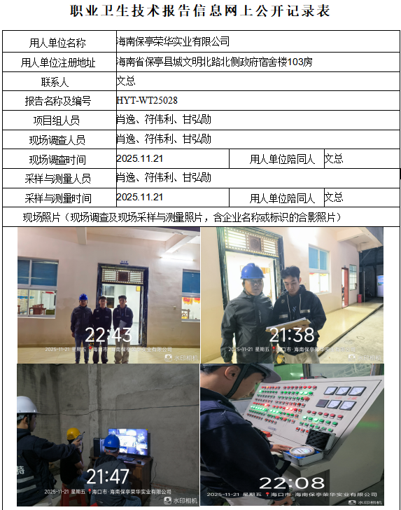 海南保亭荣华实业有限公司2025年噪声委托检测报告信息公示