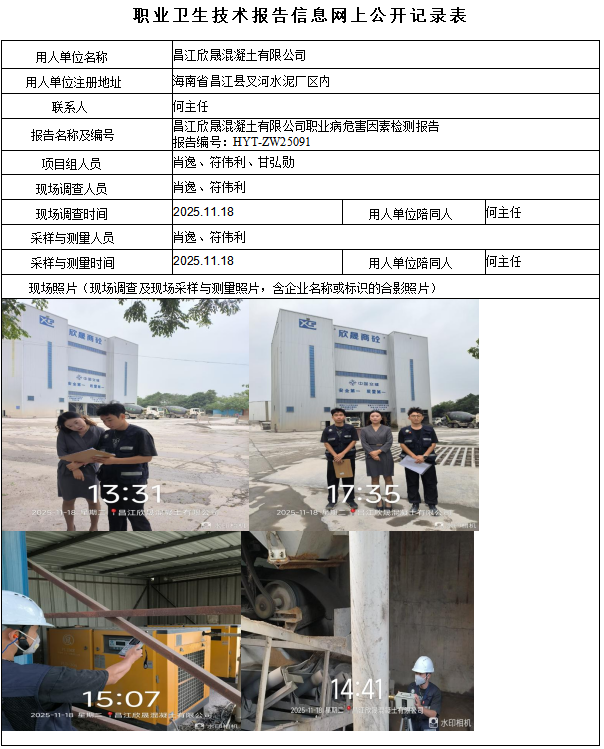 昌江欣晟混凝土有限公司2025年职业病危害因素定期检测报告信息公示