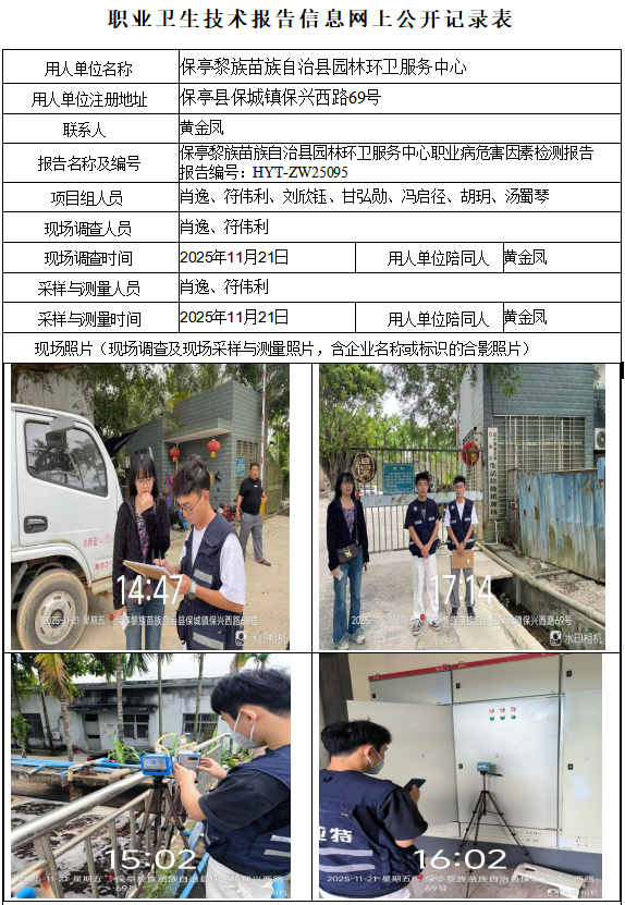 保亭黎族苗族自治县园林环卫服务中心2025年职业病危害因素定期检测报告信息公示