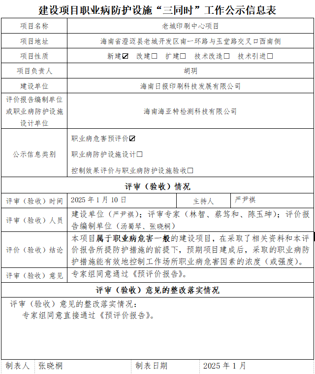 老城印刷中心项目职业病危害预评价工作公示信息表